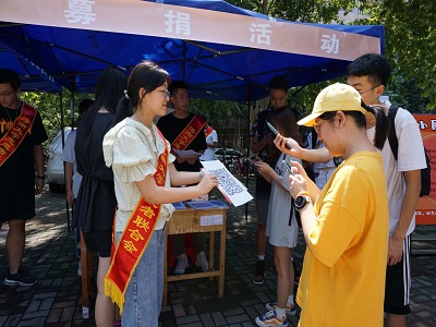 为进一步弘扬奉献精神,9月8日,ylzzcom永利总站线路检测环抱碧水青年志愿者协会成员们于八食堂广场处参与“济大希望小屋”募捐活动。