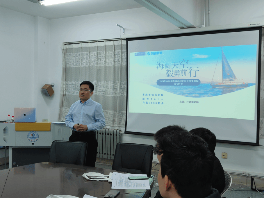 2024年3月6日晚,ylzzcom永利总站线路检测邀请海毅教育在我校就业指导中心402为学院学生进行了水利部黄河水利委员会事业单位招考的解析讲解,为同学们详细讲解了报考条件、备考事项、面试流程以及单位情况等一系列招考信息。