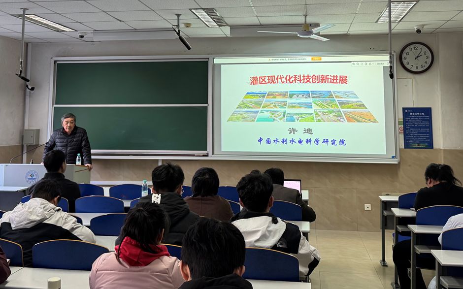 2025年11月19日下午,应学院邀请,中国水利水电科学研究院水利研究所名誉所长、国家节水灌溉北京工程技术研究中心原主任、教授级高级工程师许迪在1J205为我们师生作题为“灌区现代化科技创新进展”的学术报告。报告会由学院副院长庞桂斌主持,相关专业教师及研究生参加。