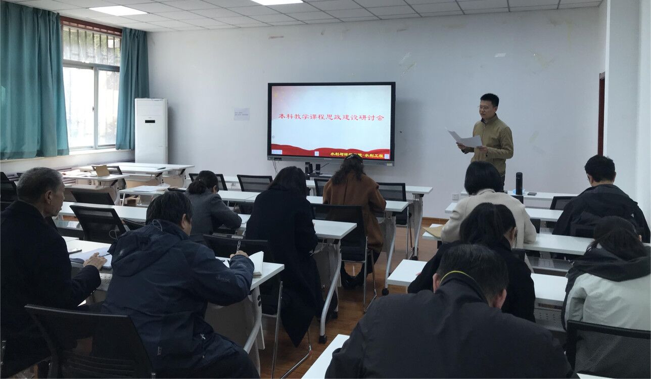 为深入学习习近平总书记关于教育的重要论述,贯彻落实全国教育大会精神,传达我校本科教学课程思政建设推进会的会议内容和会议精神,3月9日下午,我们水利工程系于9教105室召开了本科教学课程思政建设研讨会。副院长庞桂斌、水利工程系全体教师出席会议,会议由水利工程系教工党支部书记边振主持。