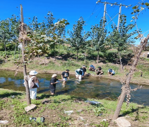 此外,学生们还深入考察了柳江盆地的地貌类型,包括河流地貌、岩溶地貌、海岸地貌等。在大石河流域,学生们不仅观察了河流的阶地、曲流沉积特征,还学习了如何进行流速、流量等水文测量和计算。